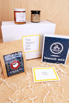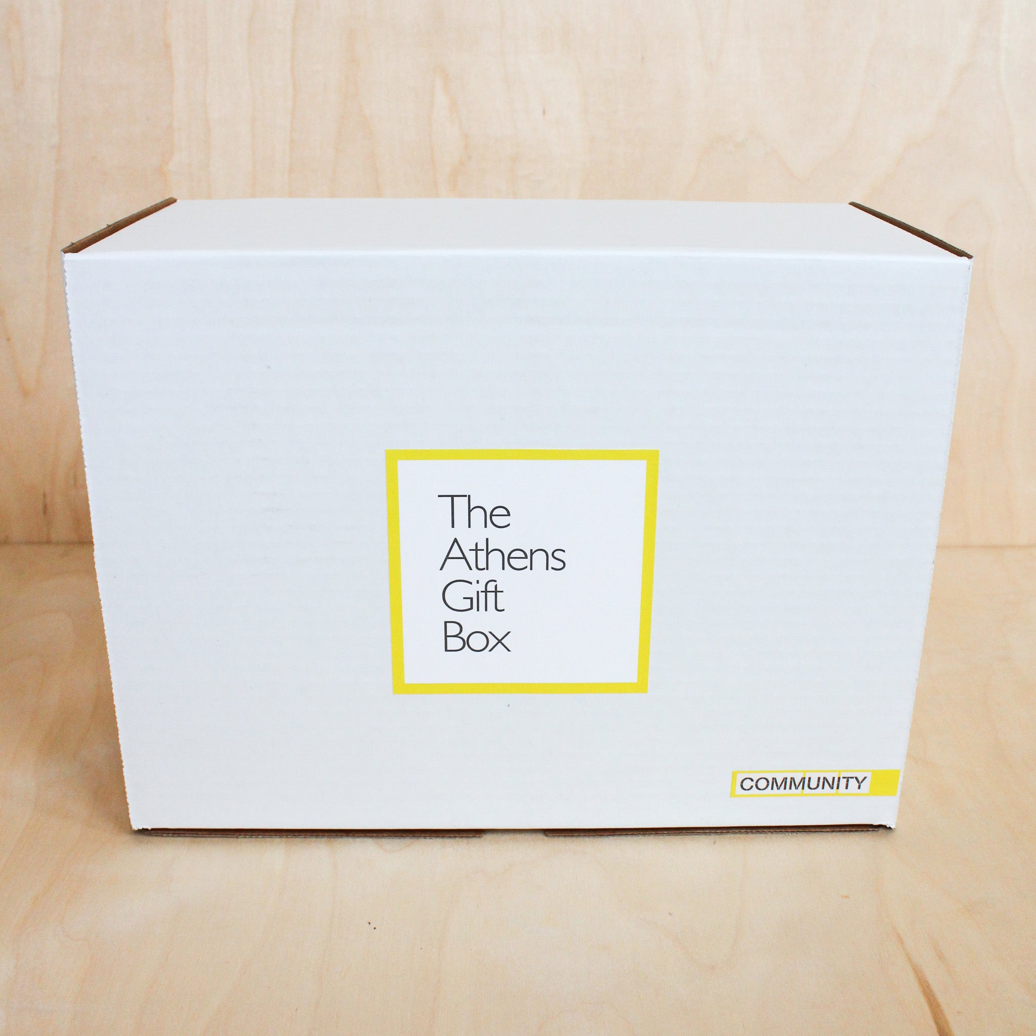 The Athens Brunch Box features our new Athens Gift Box design in a white cardboard box, and is filled with many of our bestselling products from four local makers.