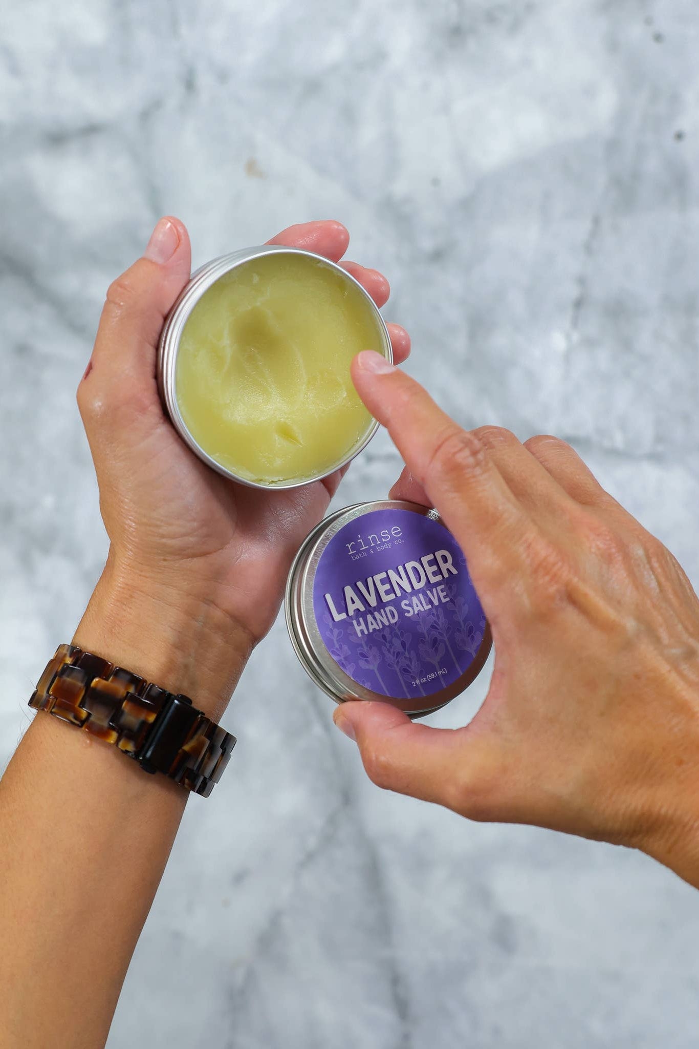 Rinse hand salves are made to help replenish & rejuvenate tired, dry skin with a concentrated blend of skin-loving ingredients. These concentrated ingredients help provide a barrier on the skin that keeps moisture in and any drying factors (like cold weather or irritants) from penetrating the skin. Traditionally, salves are known for their skin-supporting ingredients & are said to help promote natural healing & nourishment.