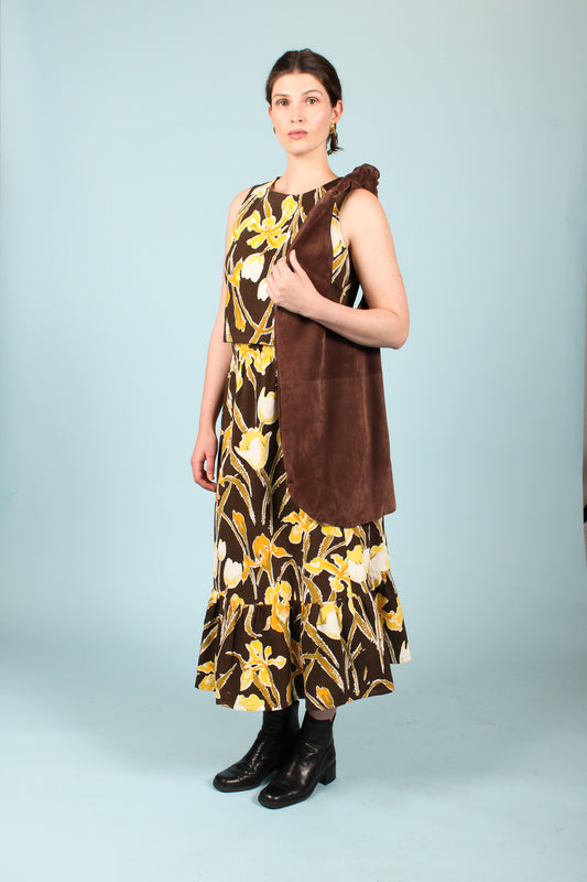 Handmade Maxi Skirt in Mahogany Garden Size M