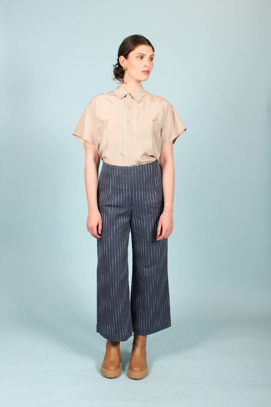 Redesigned Ruffle Crop Silk Shirt in Latte Size M