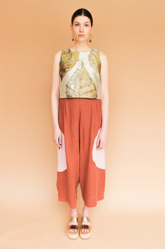 Handmade Leaf Brocade Crop Tank Size S, M, L