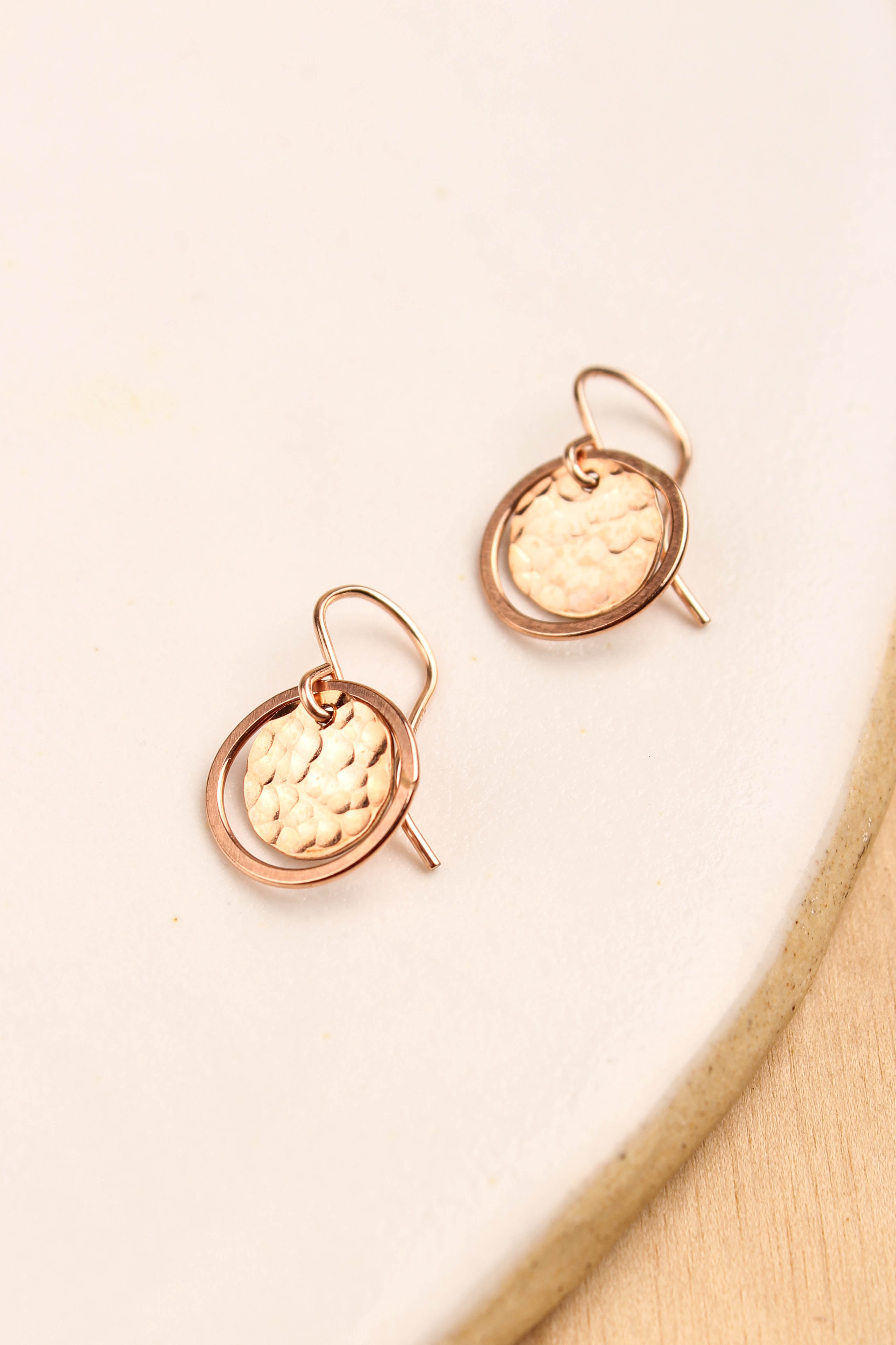 The compact size of these earrings makes them extremely easy to wear. Though the round shape is minimal and understated, these disc dangle earrings are hammered by hand to catch the light like whoa with every slight movement.