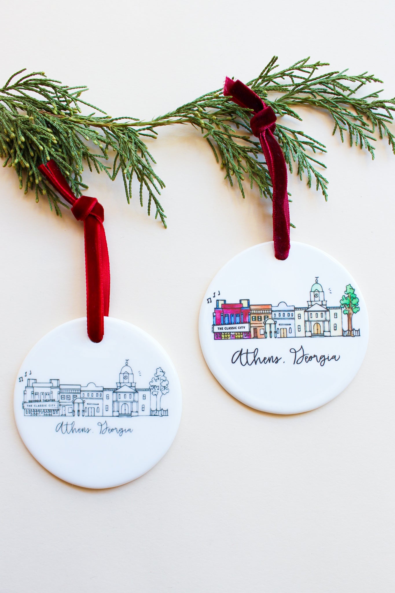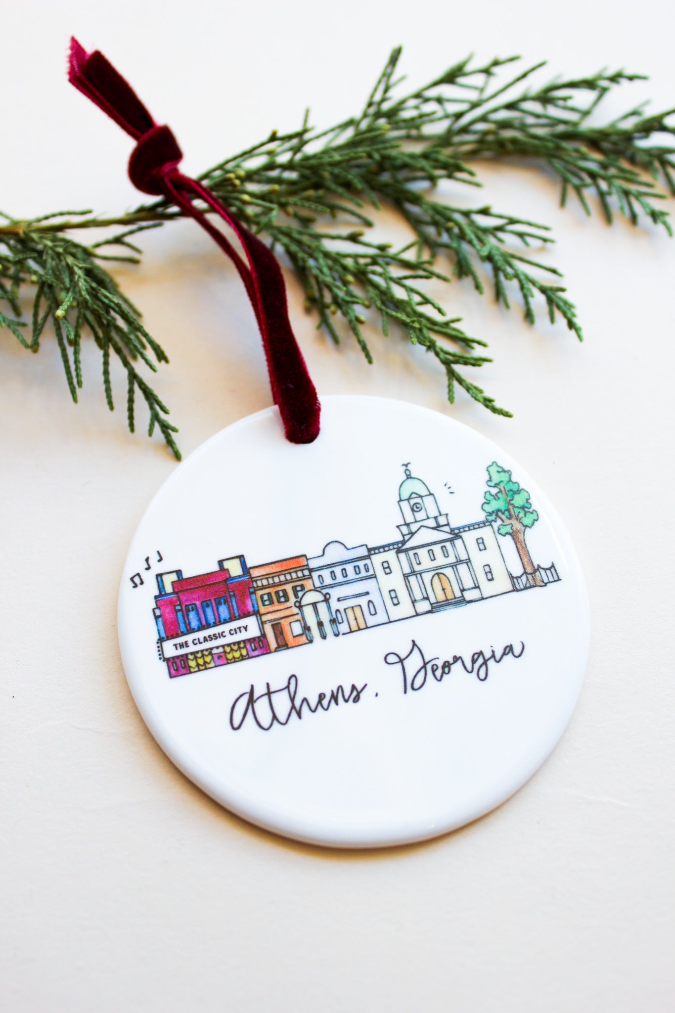 Natty Michelle's artwork has been a community favorite for years, and these beautiful ceramic ornaments will brighten any tree while showing our favorite town some love during the holidays! Natalie Kilgore, artist and designer, delights in painting maps and skylines of beloved cities and towns -- capturing what makes locals proud to call a place home.