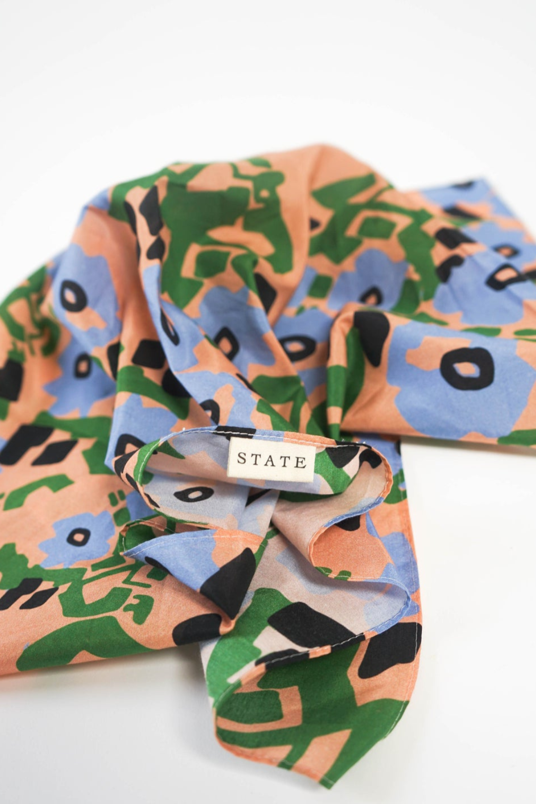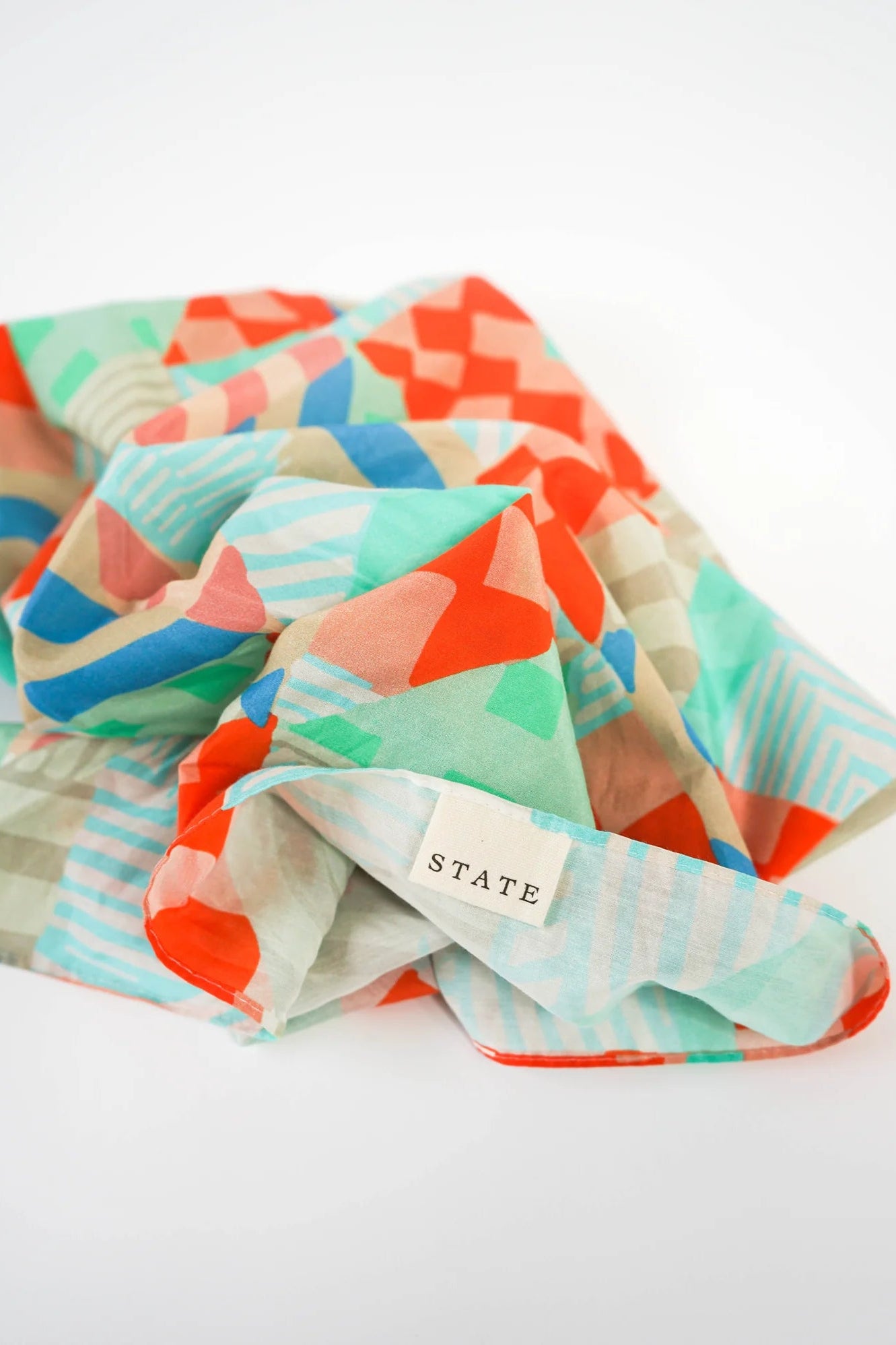Printed with a custom STATE print, each bandana is bold and graphic. Made from a delectable blend of cotton and silk, it’s lightweight, but has enough tooth to withstand whatever you throw at it.