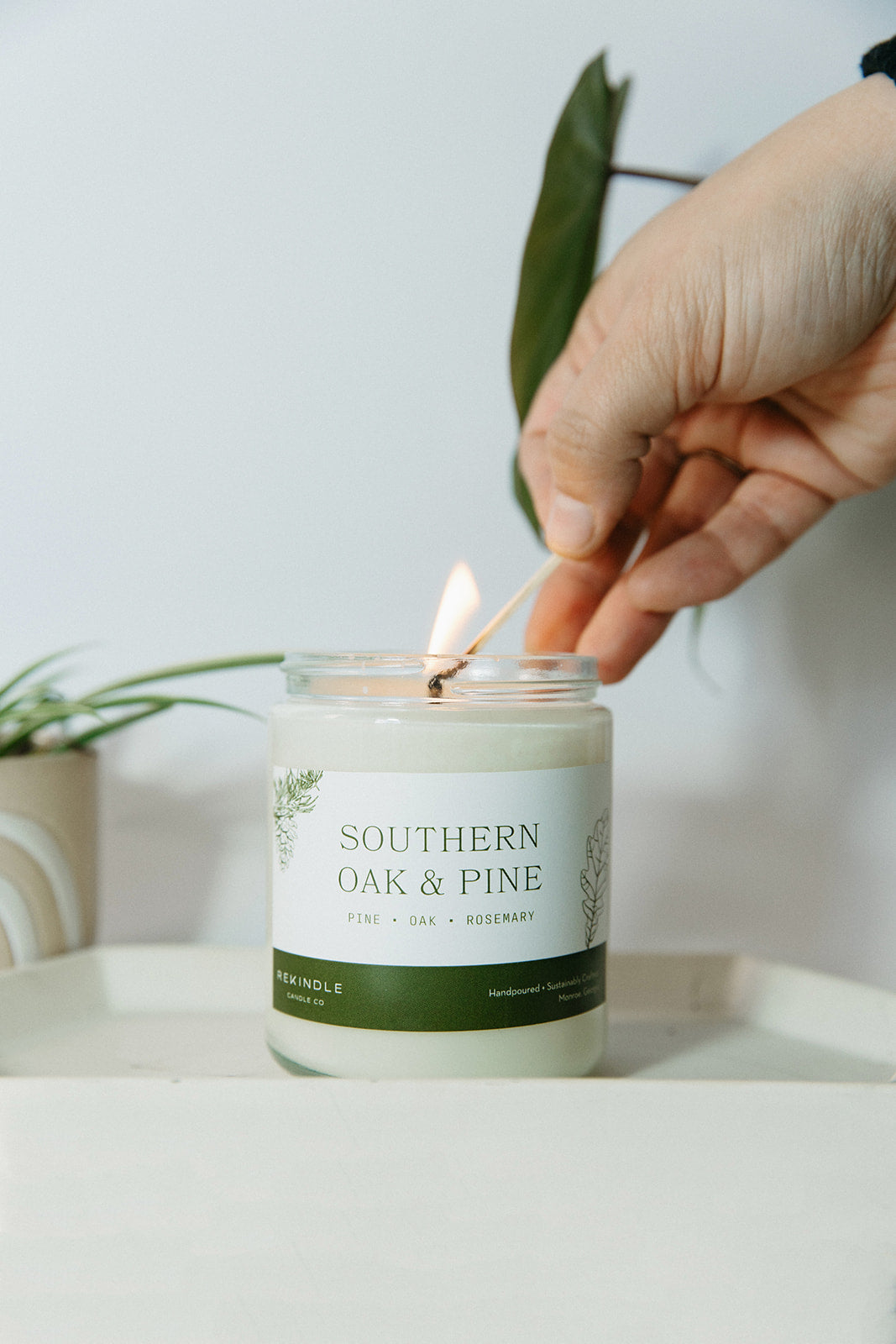 Southern Oak + Pine: Rosemary, Pine Needles, Cypress, Lemon Peel, Cedar, Moss, Oak