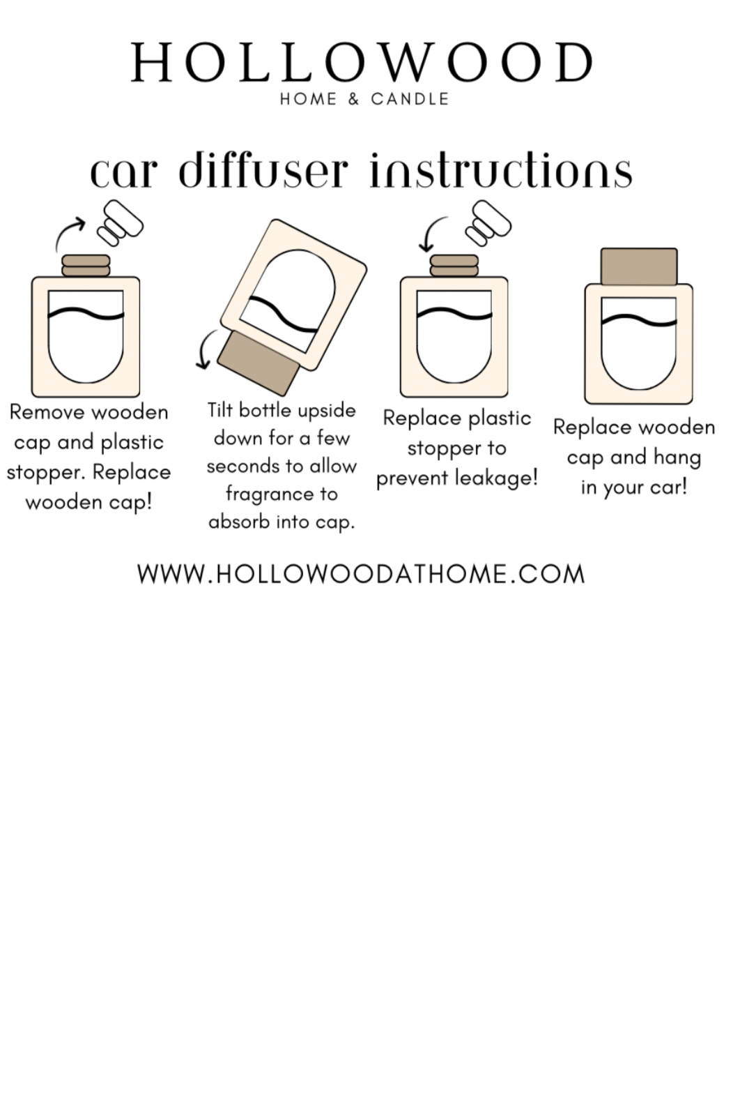 How to use: Remove the wooden lid and place it to the side. Remove the plastic lid from the container, carefully place the wooden lid back on, and tilt the bottle upside down for a few seconds. Refresh the scent only when lid is dry.