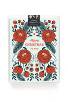 This patterned, folk art inspired Christmas Card card features bright red hand-drawn roses and leaves, intricately swirling around your holiday sentiments. Blank on the inside for your sentiments.