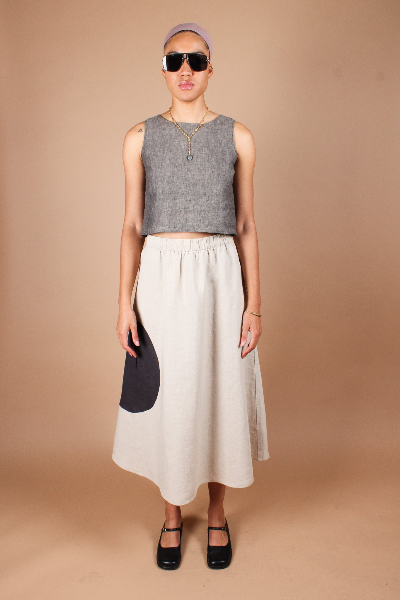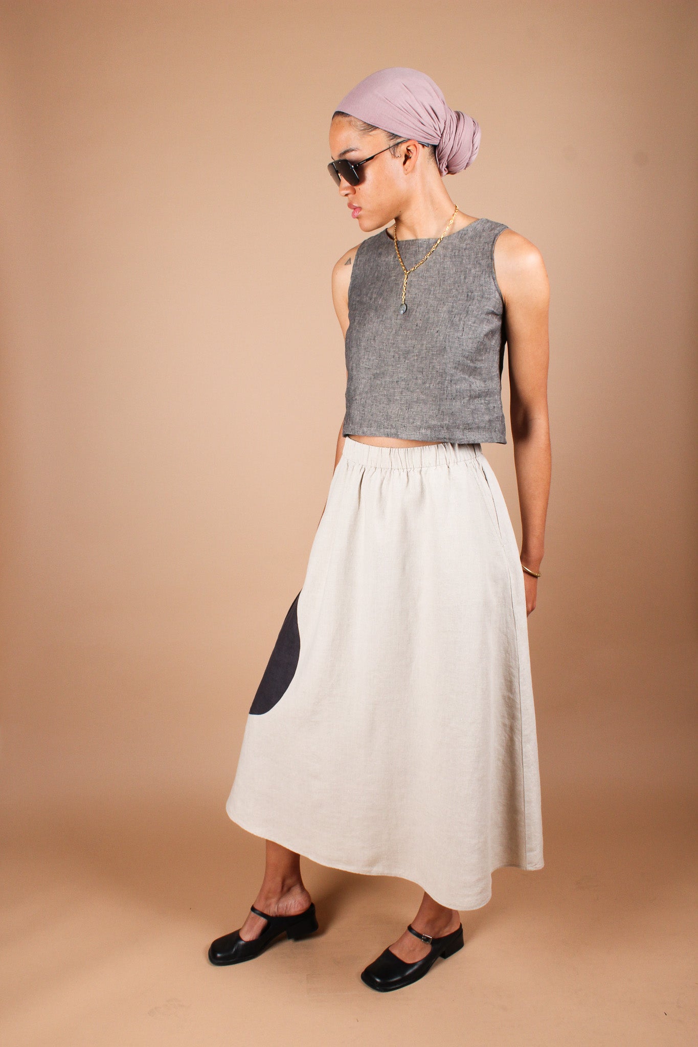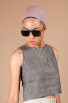 Made from salvaged fabric in a linen blend, this cropped tank top was handmade at Community.