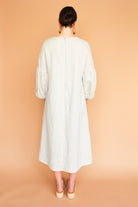 Handmade Lantern Sleeve Linen Midi Dress in Moon Size M