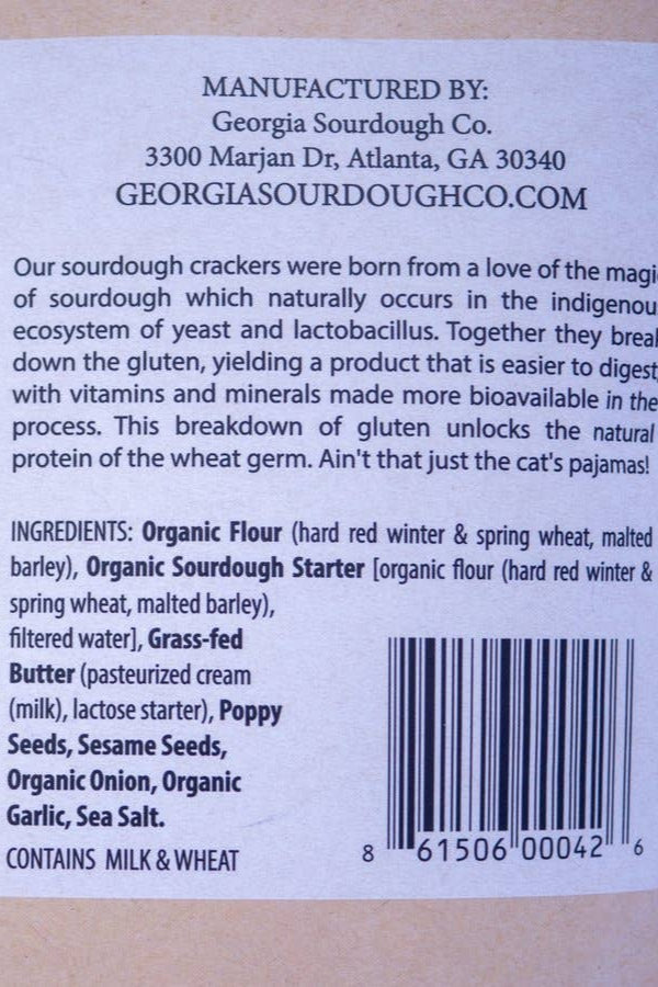 Georgia Sourdough Co.'s traditional sourdough crackers with Everything seasoning.
