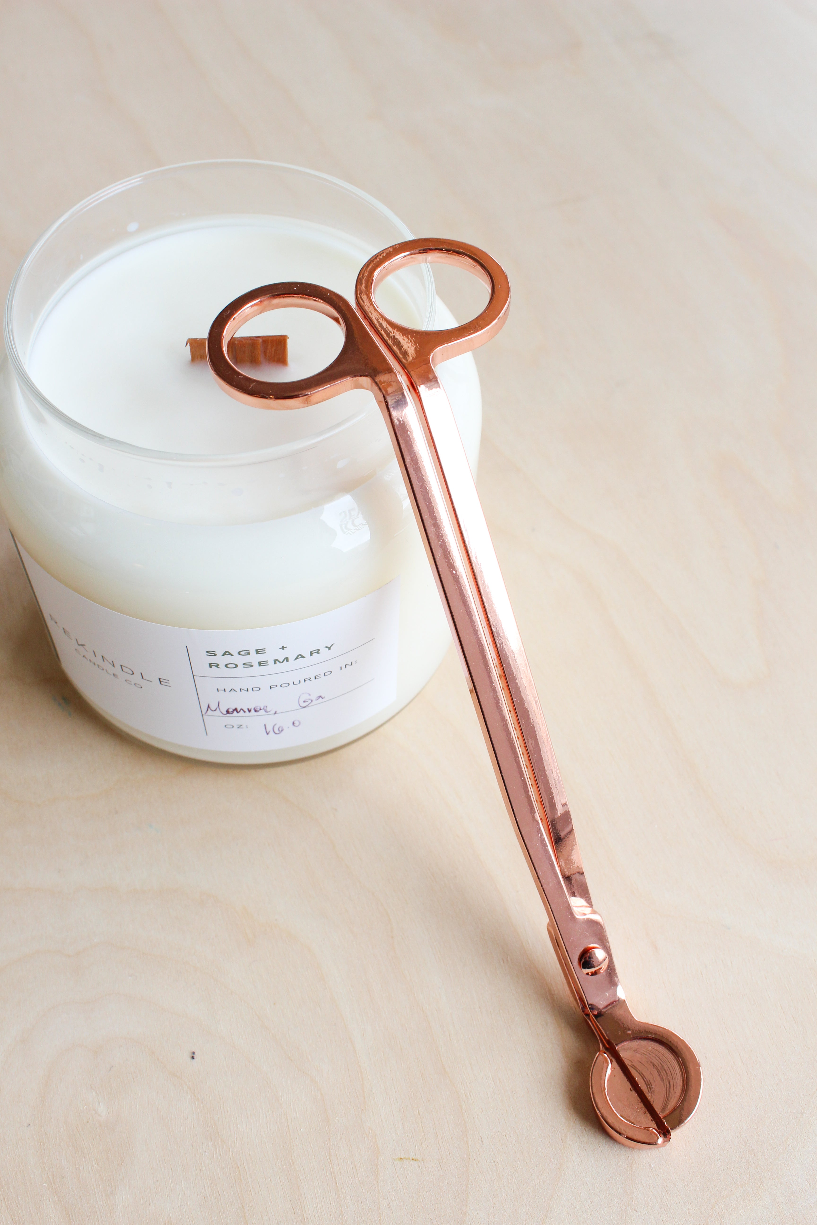 Wick trimmers help maintain proper wick height. You want to make sure to keep you wick trimmed between burns. This gets rid of ash that can snuff the flame and also prevent sooting or smoke from a large flame. Trimming your wick also helps with burn quality and smell.