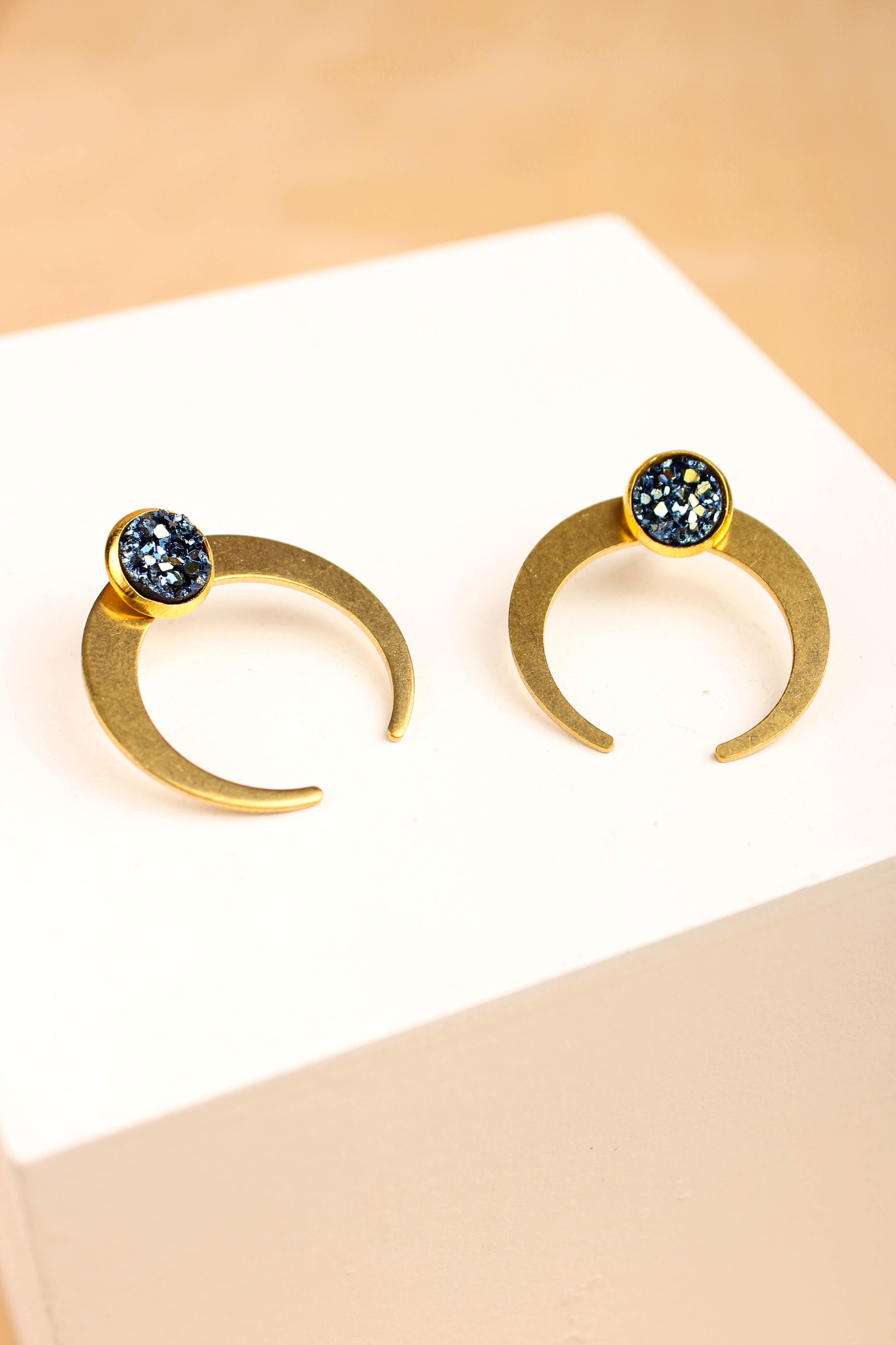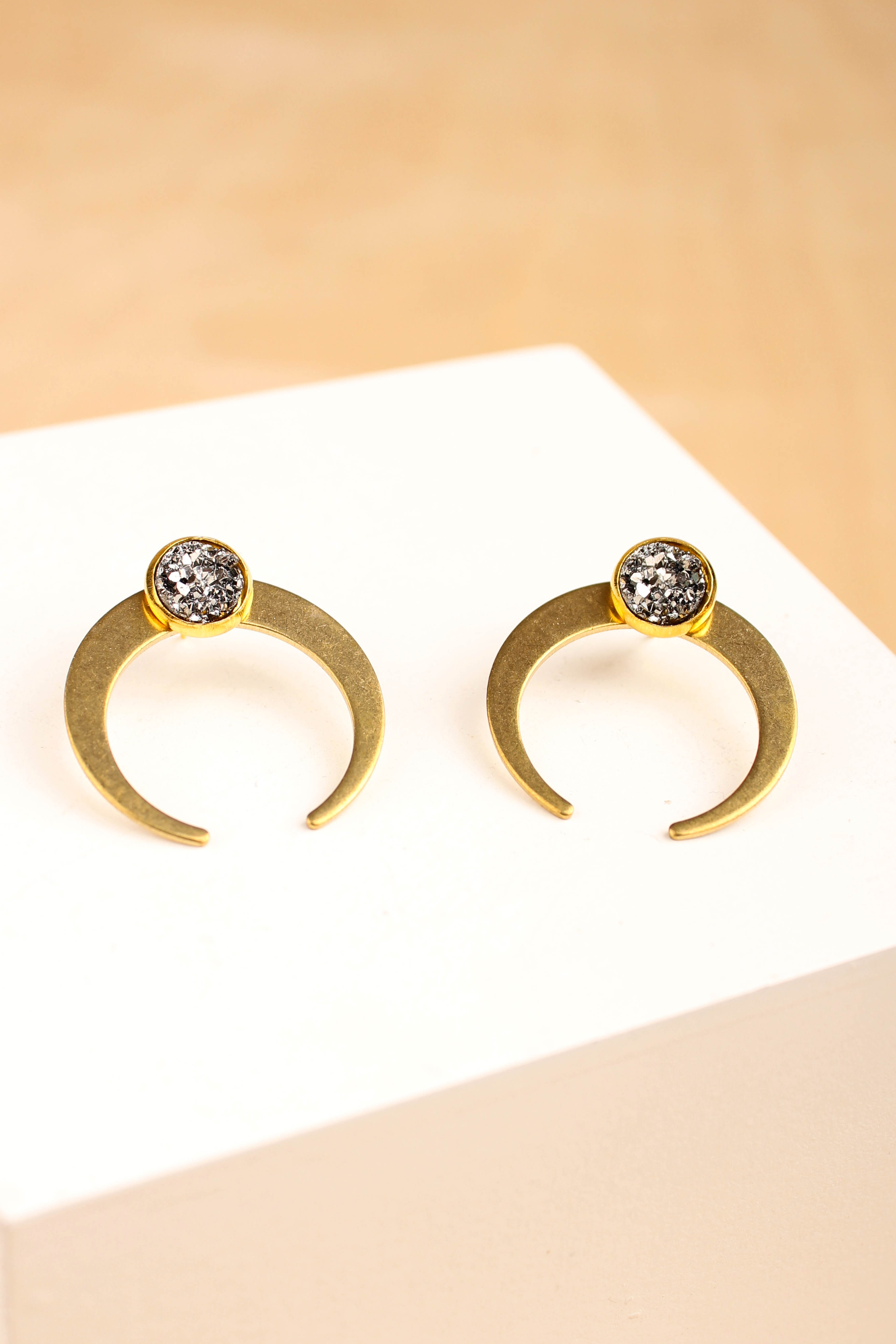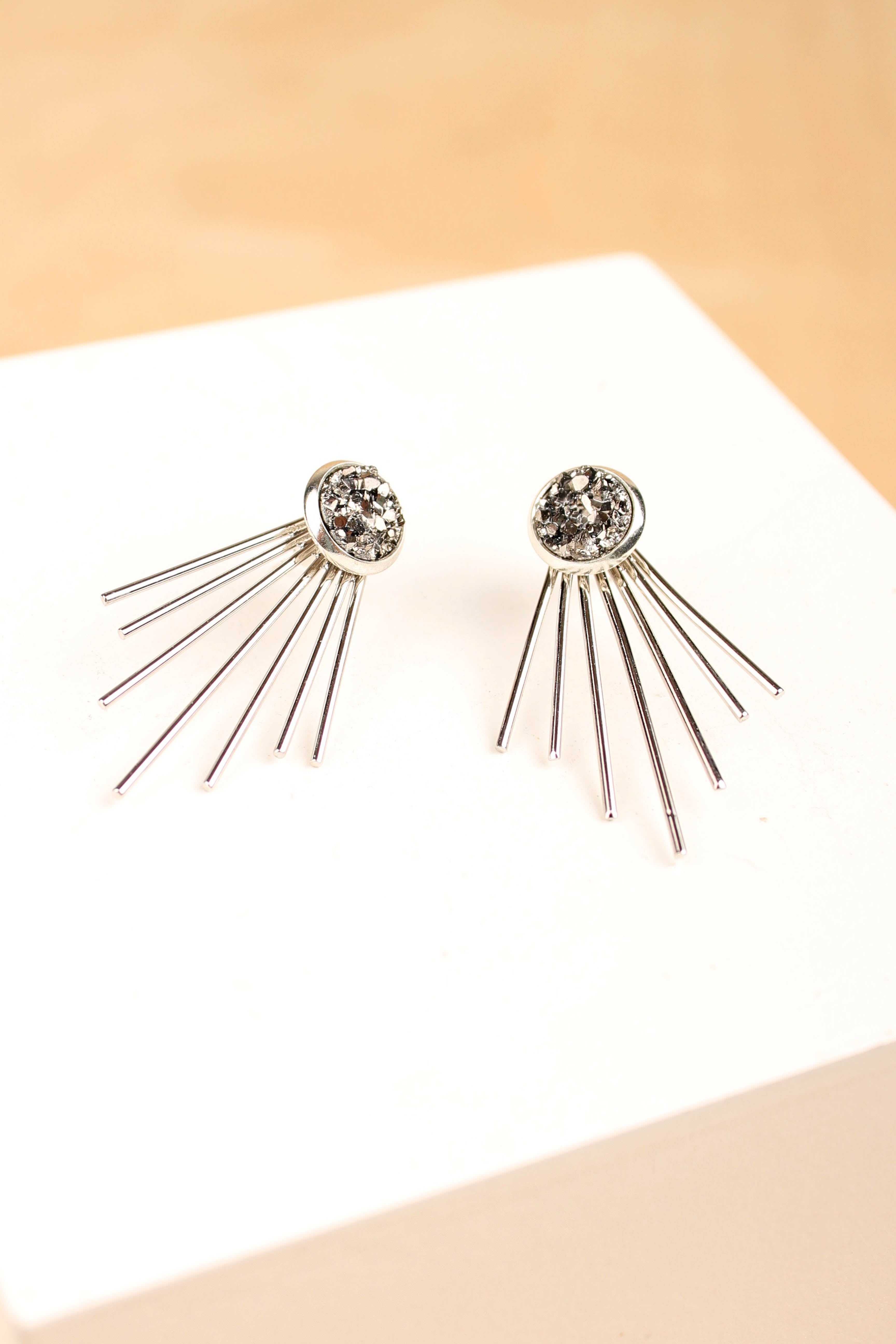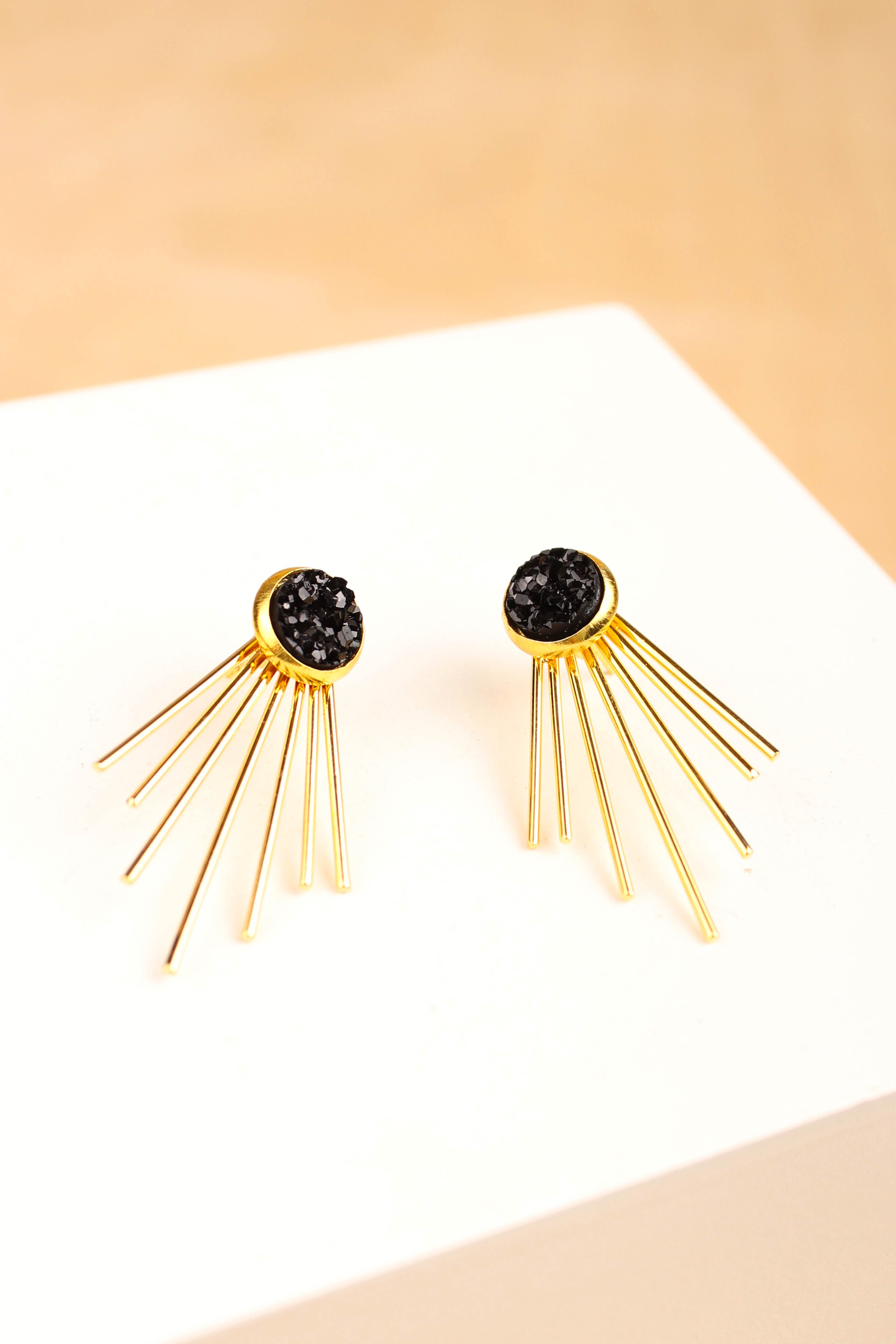 Wear the stud in front and the rays/spikes behind your earlobe, or combine them in front for one fierce stud set. Ear Jackets are gold plated brass, studs are resin in gold plated brass. Nickel and lead free.