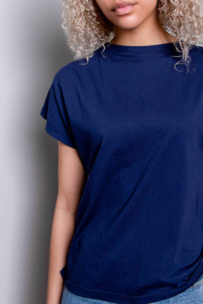 The Jersey Tee is ethically handmade with locally spun yarn from right outside our beloved town of Athens, Georgia. This modern, loose and boxy fitting tee has short sleeves, a wide boatneck, and long hemline for more coverage than our crop tee. We love that there is no seam line at the shoulder, so the soft jersey material flows delicately down the arm with the breathability and stretch that only natural fiber can give.
