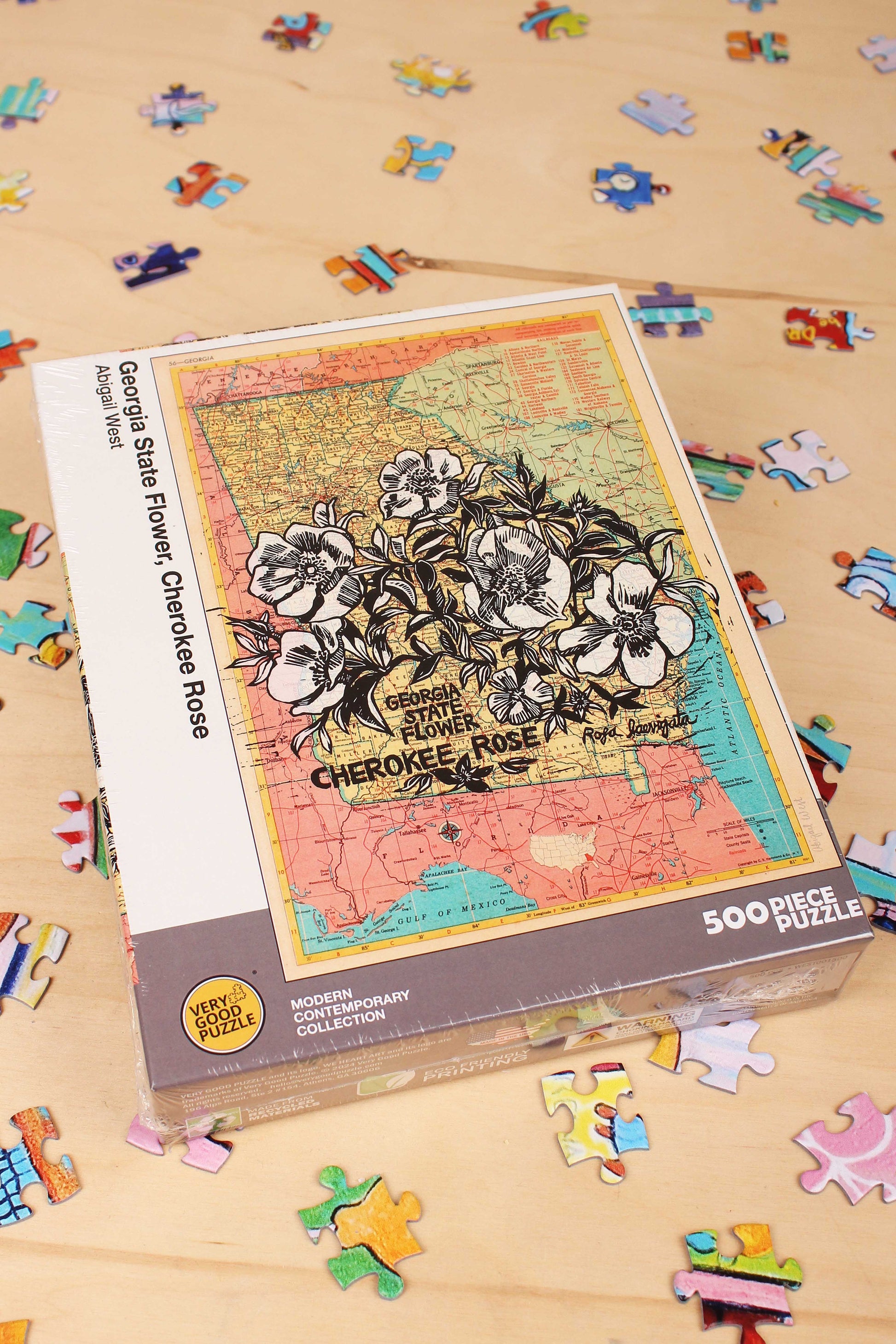 500 piece puzzle Georgia State Flower, Cherokee Rose by Abigail West