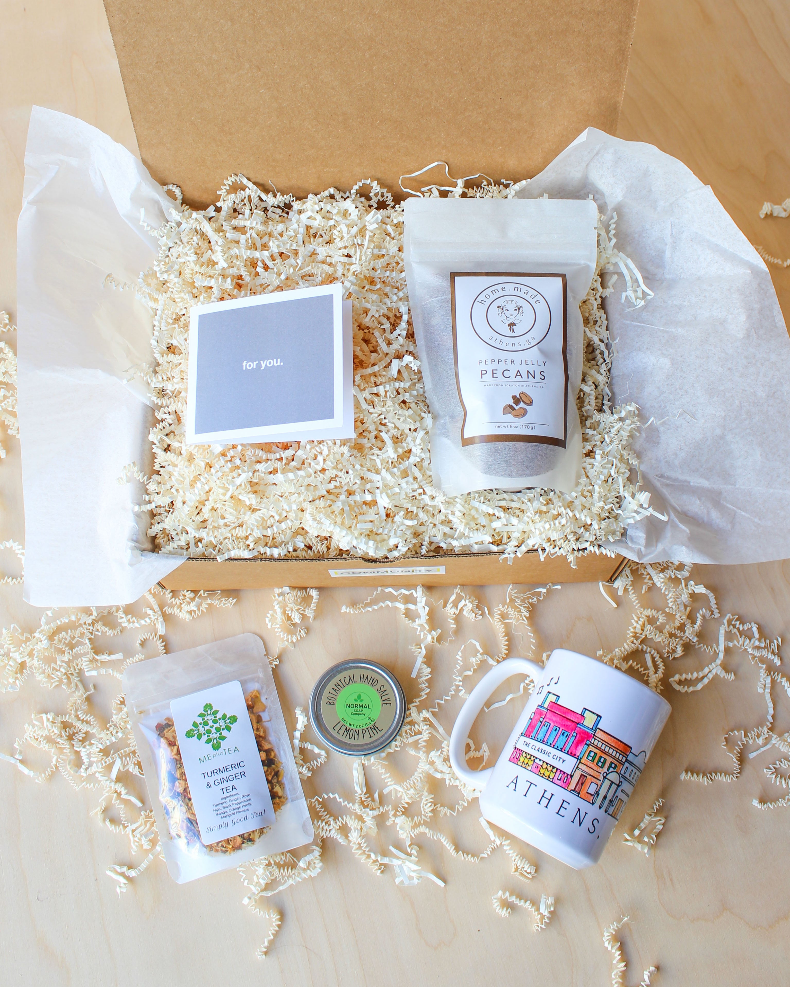 Our Athens Gift Boxes are filled with products that were lovingly made by artisans and makers from the Athens area. By supporting local and sustainable businesses like ours you help maintain this vibrant, creative city that we love so much, and at the same time limit your environmental footprint.