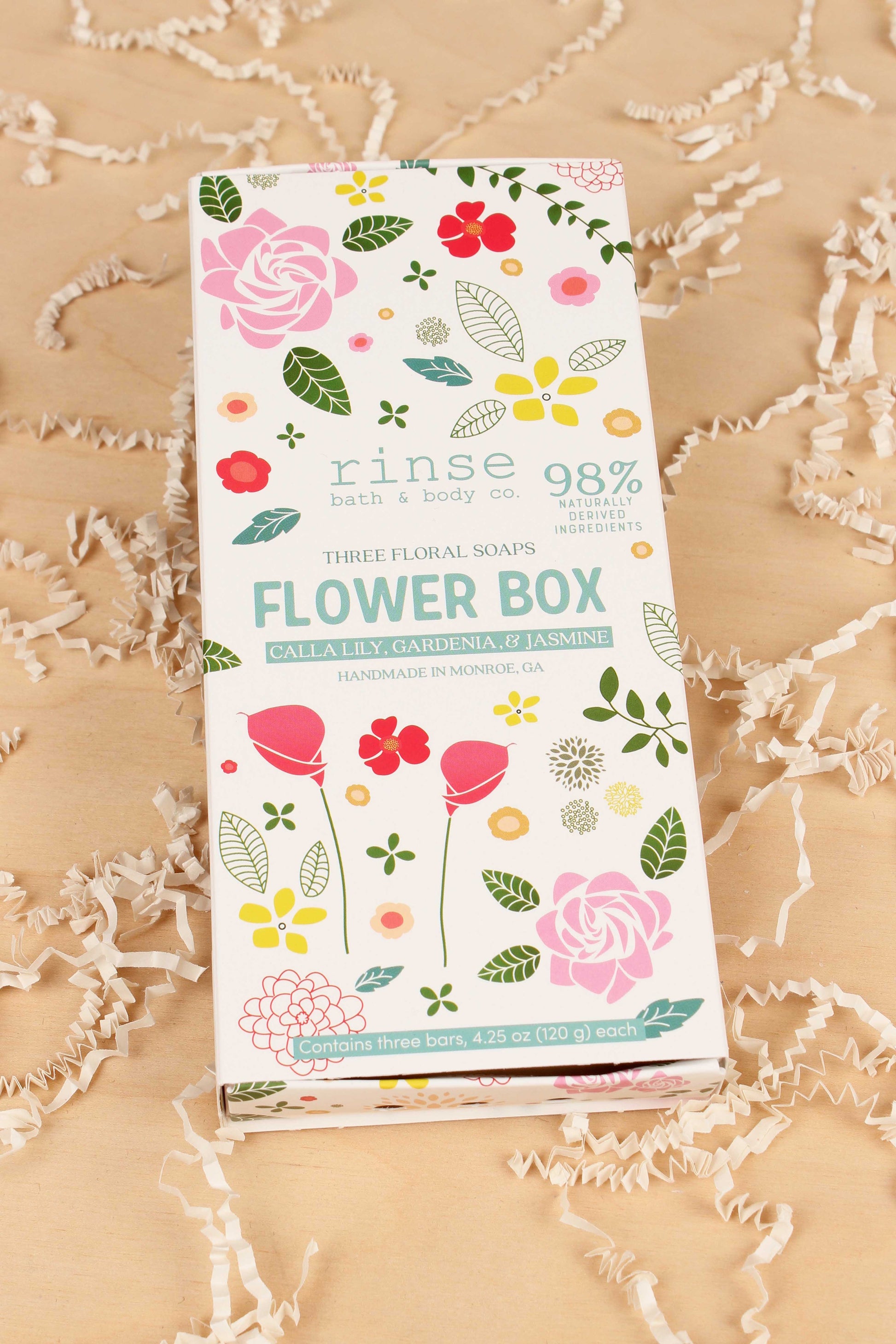 Contains three bar soaps: Gardenia, Jasmine, and Calla Lilly.