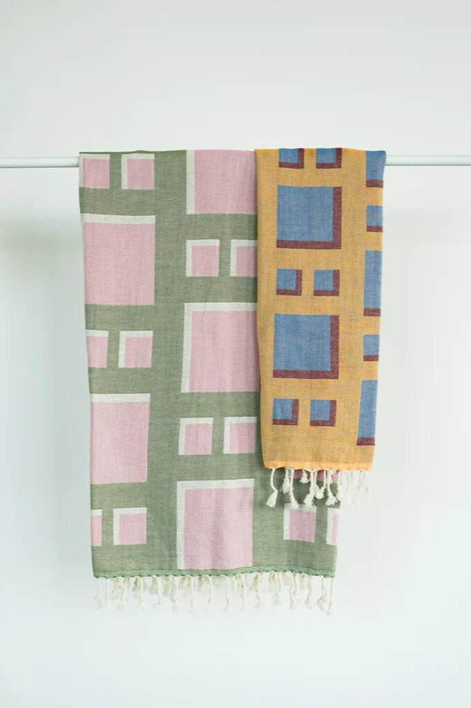 Windows. This 3D pattern feels both vintage and new. Coming in 2 pleasing color-ways, you can enjoy this print in either a Bath or Hand towel.